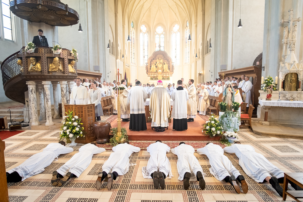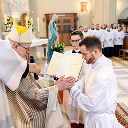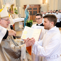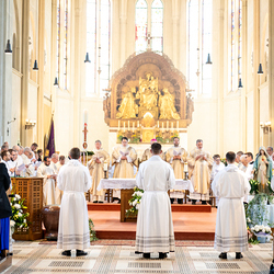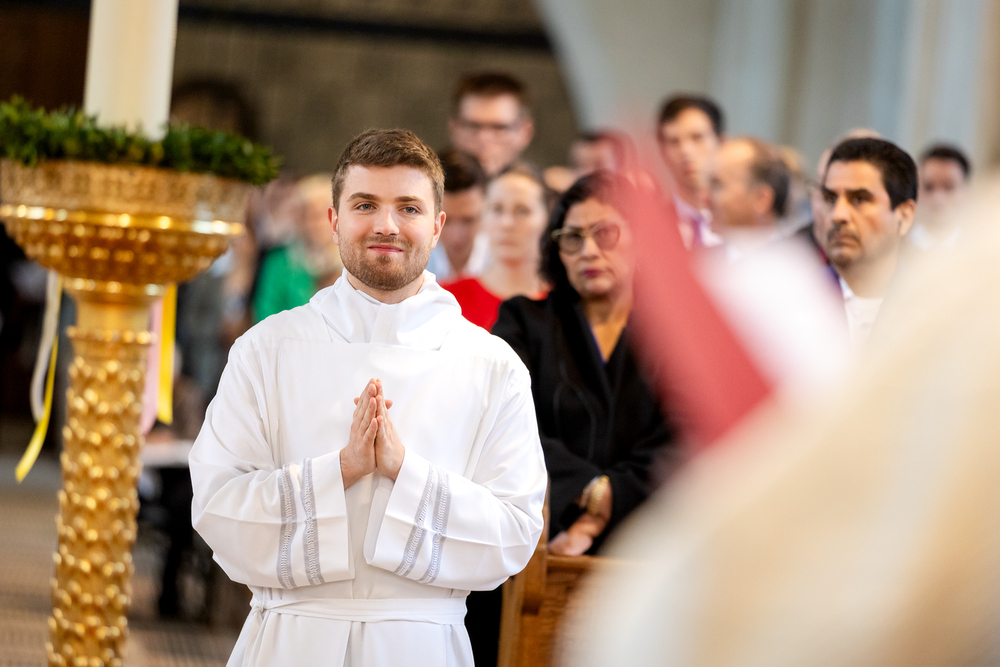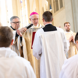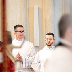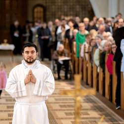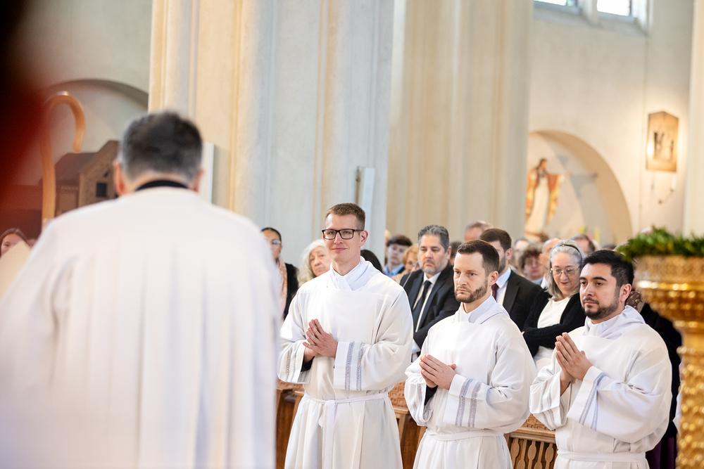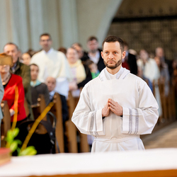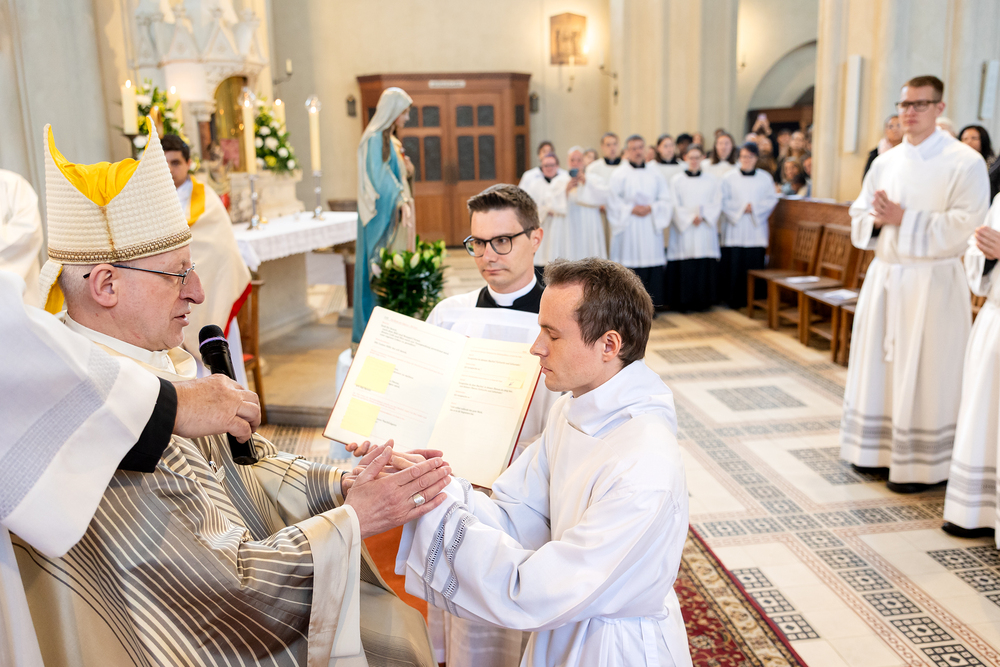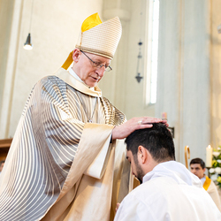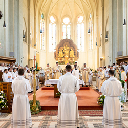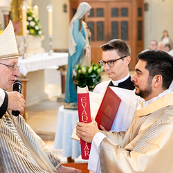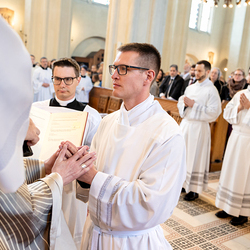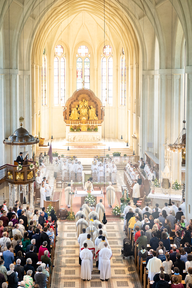Am 10. Mai weihte Weihbischof Franz Scharl in der Pfarrkirche St. Leopold Donaufeld sieben Männer zu Diakonen für die Erzdiözese Wien. Die Kandidaten kommen aus verschiedenen Gemeinschaften: drei aus dem Wiener Priesterseminar, einer aus dem Benediktinerpriorat St. Josef in Maria Roggendorf und drei aus dem diözesanen Missionskolleg „Redemptoris Mater". Manuel Rennhofer, Joachim Loshehand und Julius Moses Münzer kommen aus dem Wiener Priesterseminar, P. Leo Maria Zehetgruber gehört dem Benediktinerpriorat St. Josef in Maria Roggendorf an drei weitere Kandidaten stammen aus dem diözesanen Missionskolleg „Redemptoris Mater“. Diese Vielfalt unterstreicht die Breite der geistlichen Berufungen in der Erzdiözese. Wir waren mit der Kamera dabei.