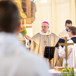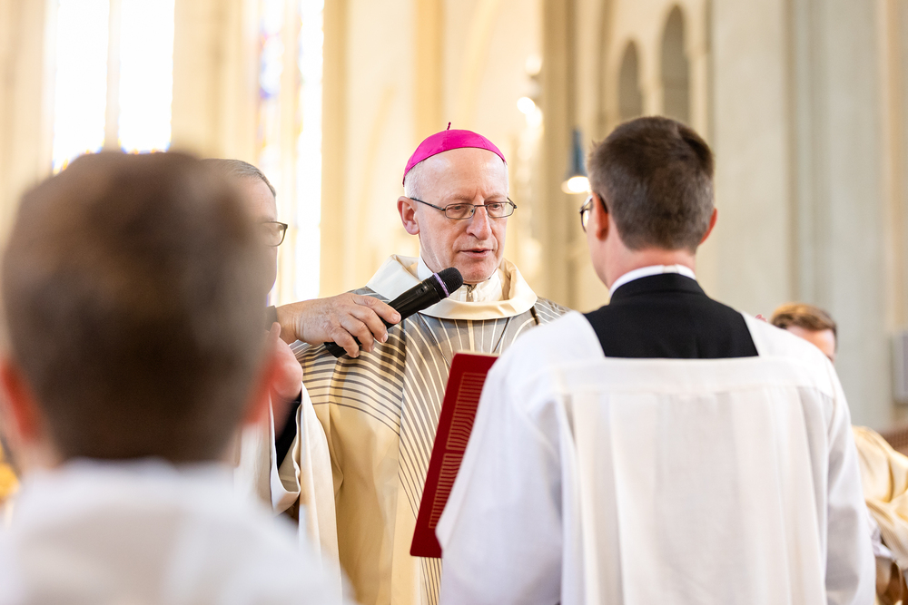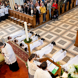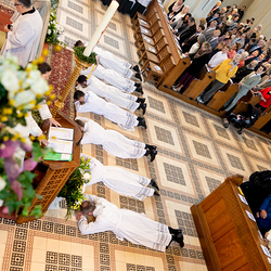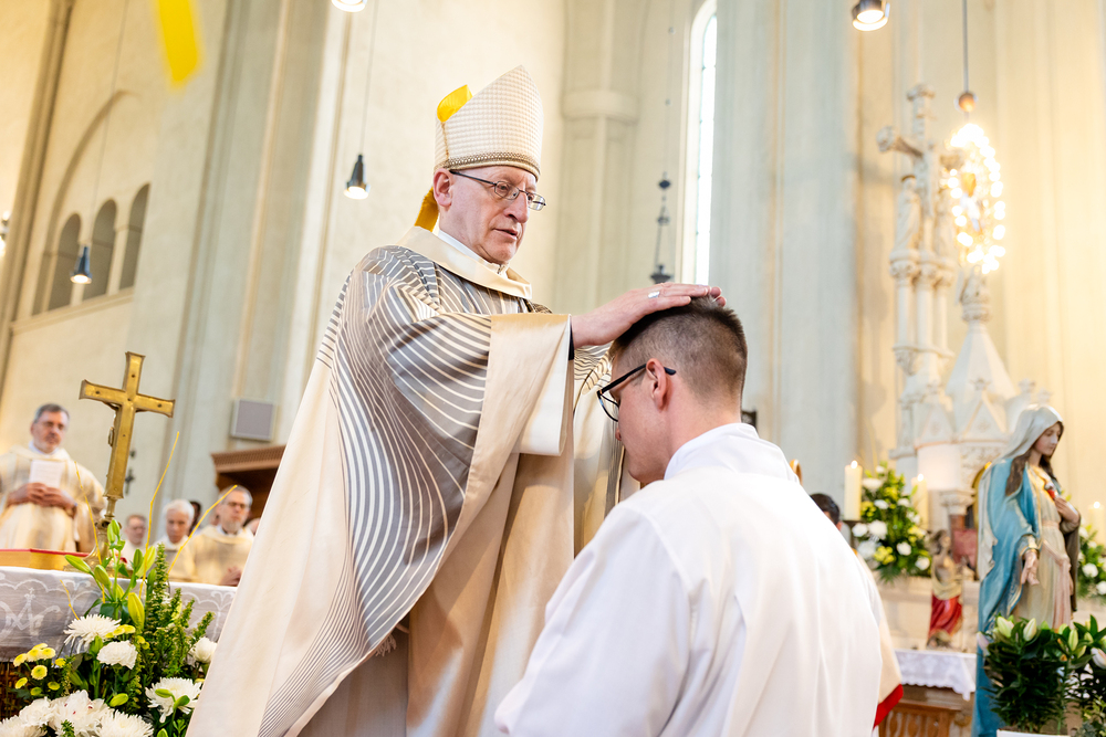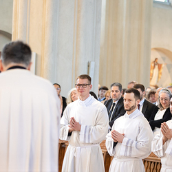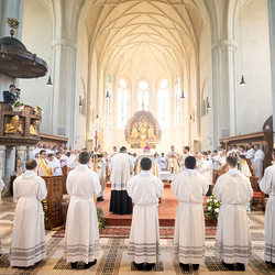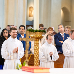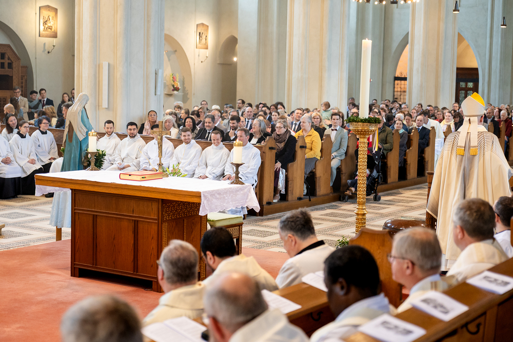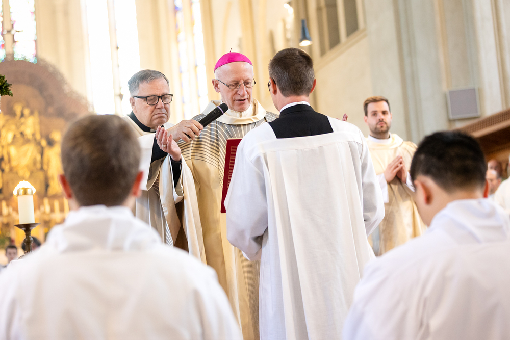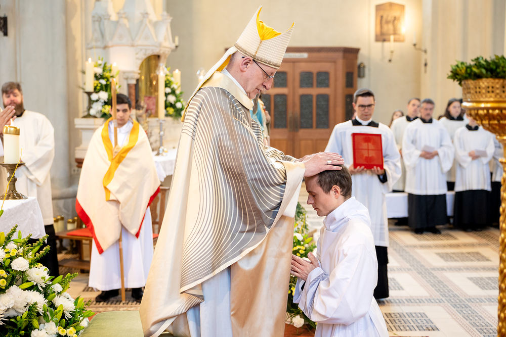 Am 10. Mai weihte Weihbischof Franz Scharl in der Pfarrkirche St. Leopold Donaufeld sieben Männer zu Diakonen für die Erzdiözese Wien. Die Kandidaten kommen aus verschiedenen Gemeinschaften: drei aus dem Wiener Priesterseminar, einer aus dem Benediktinerpriorat St. Josef in Maria Roggendorf und drei aus dem diözesanen Missionskolleg „Redemptoris Mater". Manuel Rennhofer, Joachim Loshehand und Julius Moses Münzer kommen aus dem Wiener Priesterseminar, P. Leo Maria Zehetgruber gehört dem Benediktinerpriorat St. Josef in Maria Roggendorf an drei weitere Kandidaten stammen aus dem diözesanen Missionskolleg „Redemptoris Mater“. Diese Vielfalt unterstreicht die Breite der geistlichen Berufungen in der Erzdiözese. Wir waren mit der Kamera dabei.