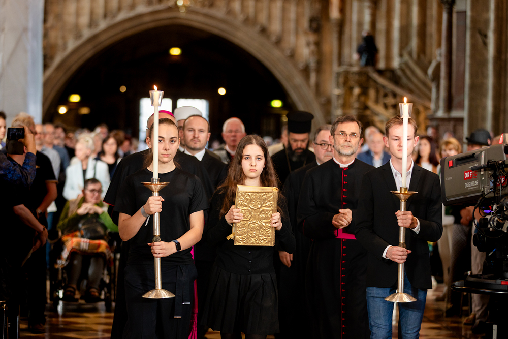 Das offizielle Österreich gedachte mit einem interreligiösen Gottesdienst im Wiener Stephansdom der Opfer des Grazer Amoklaufs. An der Feier nahmen hochrangige Vertreter verschiedener Religionsgemeinschaften sowie die Staatsspitze, einschließlich des Bundespräsidenten und der gesamten Bundesregierung, teil. Wir waren mit der Kamera dabei.