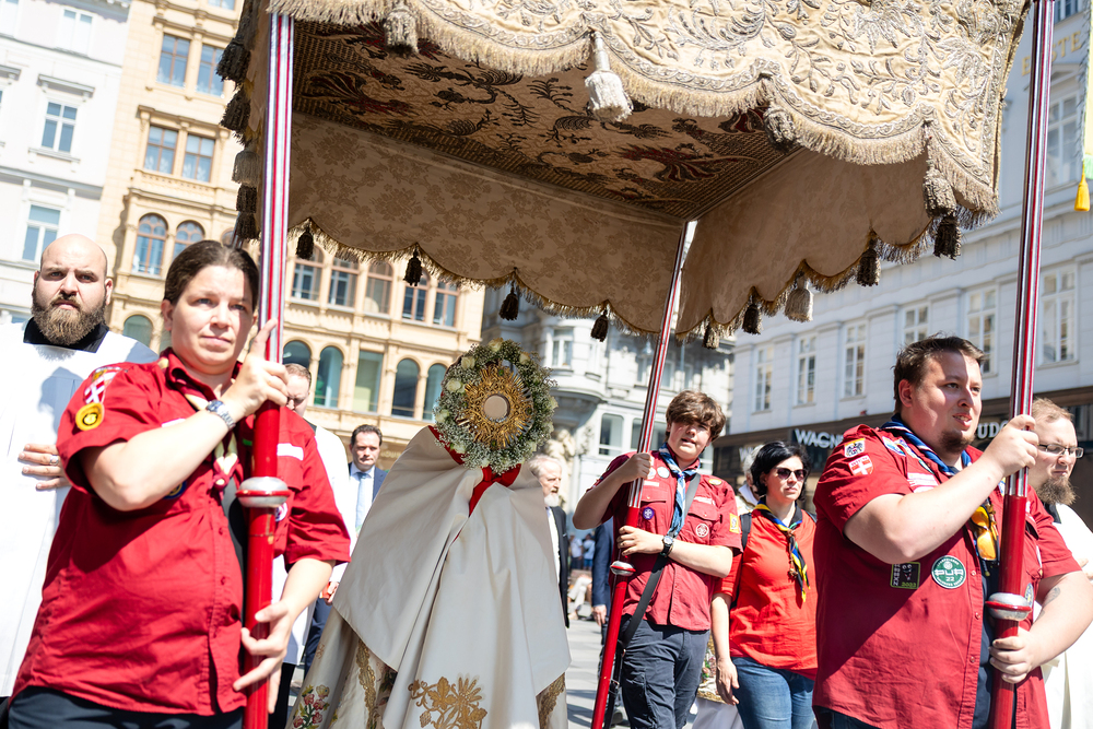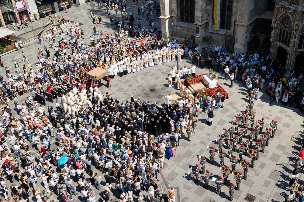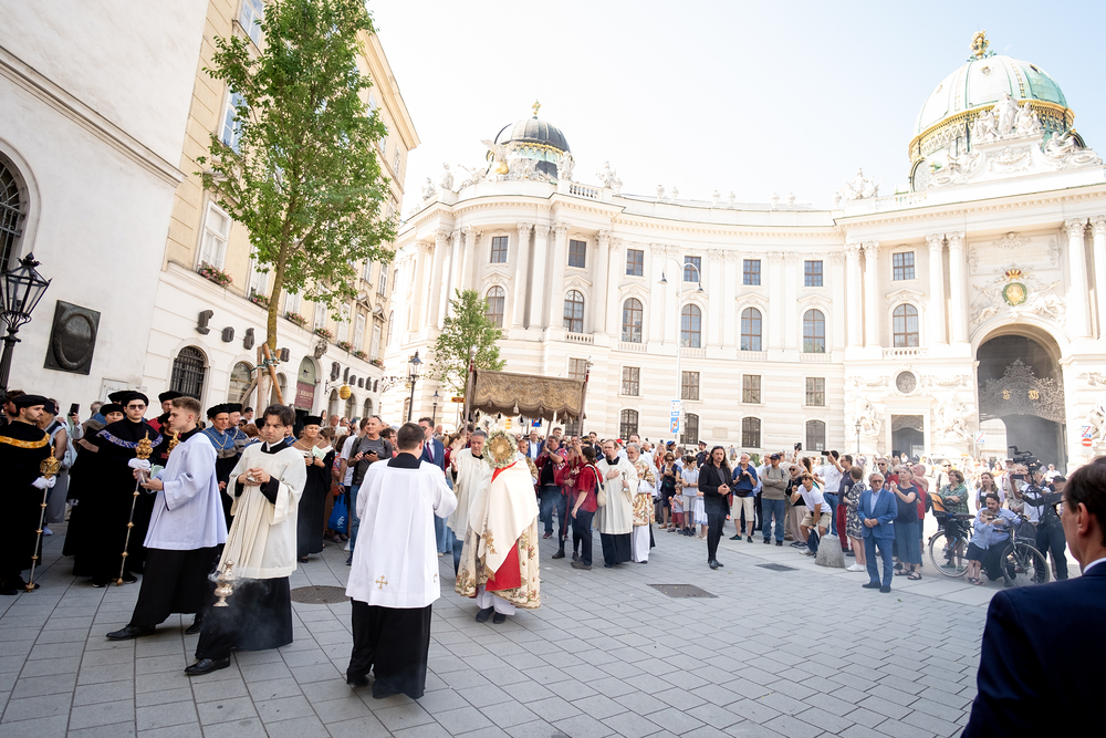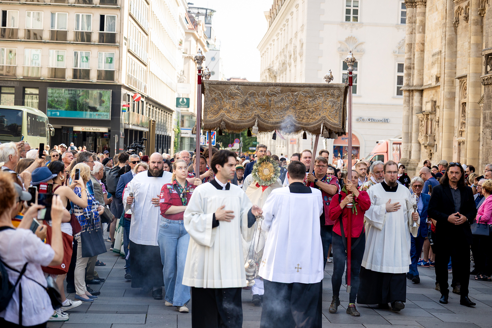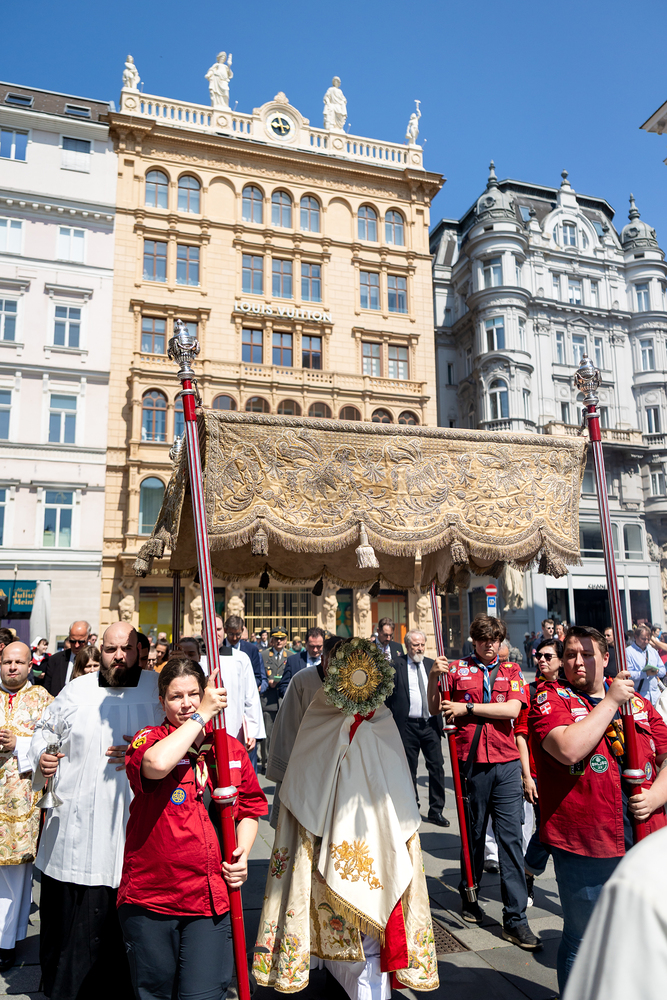Josef Grünwidl betonte beim Stadtumzug anlässlich Fronleichnam die untrennbare Verbindung zwischen dem religiösen Feiertag und der christlichen Verantwortung, Gottes Schöpfung zu bewahren und eine „ökologische Umkehr“ angesichts der Klimakrise einzuleiten. Er dankte allen, die durch nachhaltiges Handeln und politischen Einsatz dazu beitragen, notwendige Maßnahmen zu ergreifen, um die dramatischen Folgen des Klimawandels abzuwenden. Die Fronleichnamsprozession, die vom Stephansdom ausging und Stationen am Michaelerplatz sowie am Graben bei der Peterskirche umfasste, zog erneut zahlreiche Gläubige und kirchliche Gruppierungen an. Auch politische Vertreter waren anwesend. Wir waren mit der Kamera dabei.