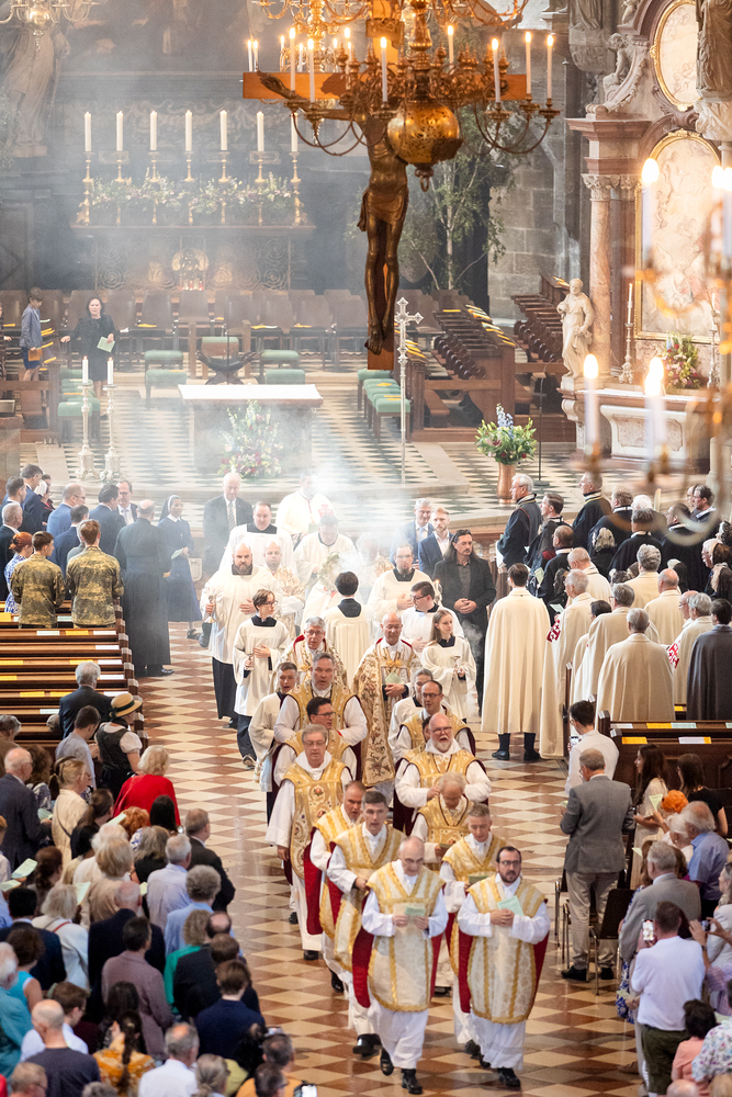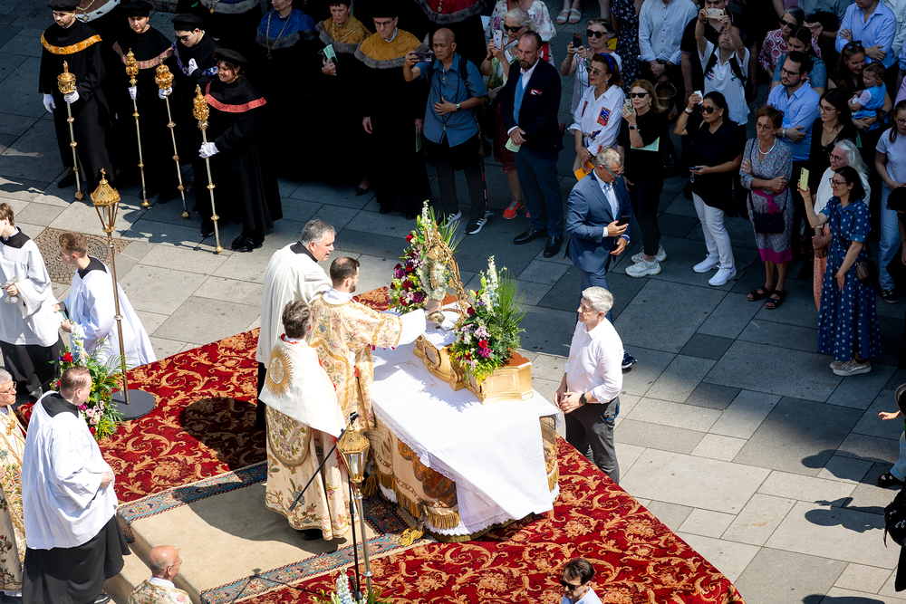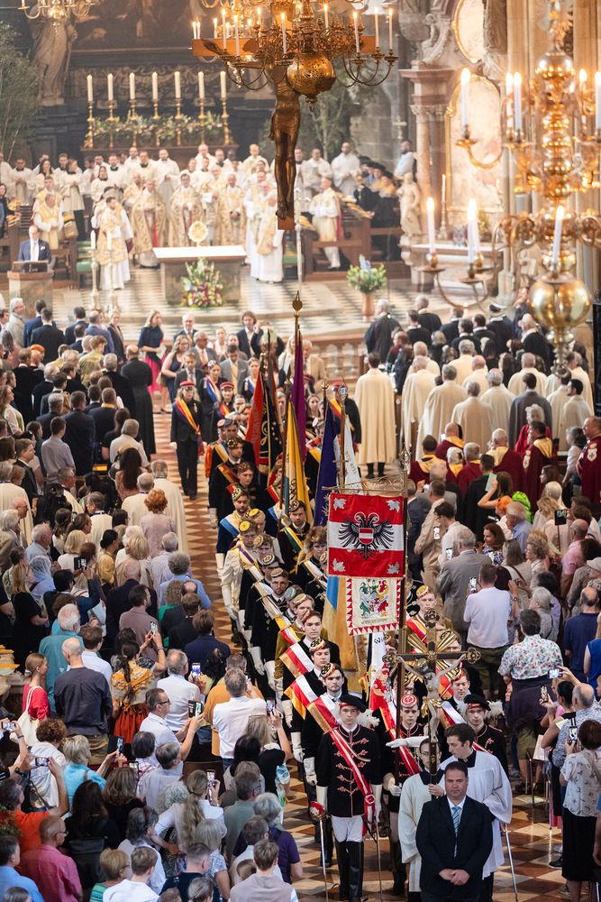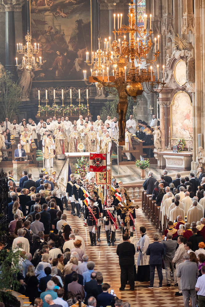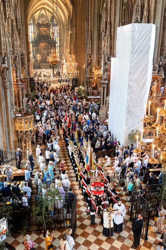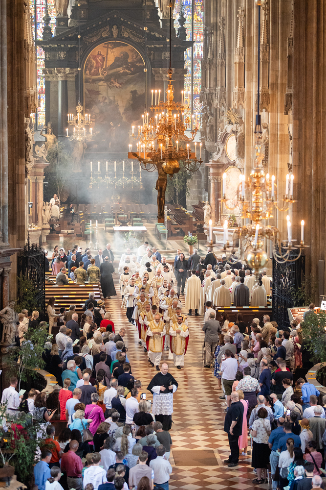 Josef Grünwidl betonte beim Stadtumzug anlässlich Fronleichnam die untrennbare Verbindung zwischen dem religiösen Feiertag und der christlichen Verantwortung, Gottes Schöpfung zu bewahren und eine „ökologische Umkehr“ angesichts der Klimakrise einzuleiten. Er dankte allen, die durch nachhaltiges Handeln und politischen Einsatz dazu beitragen, notwendige Maßnahmen zu ergreifen, um die dramatischen Folgen des Klimawandels abzuwenden. Die Fronleichnamsprozession, die vom Stephansdom ausging und Stationen am Michaelerplatz sowie am Graben bei der Peterskirche umfasste, zog erneut zahlreiche Gläubige und kirchliche Gruppierungen an. Auch politische Vertreter waren anwesend. Wir waren mit der Kamera dabei.
