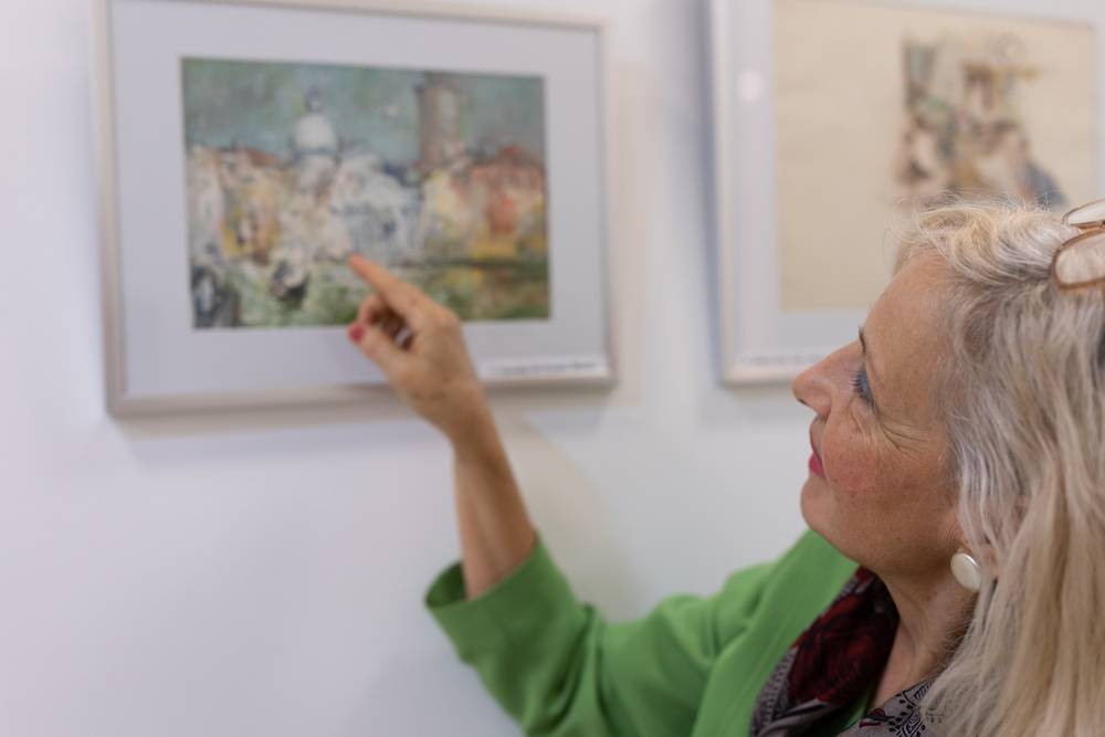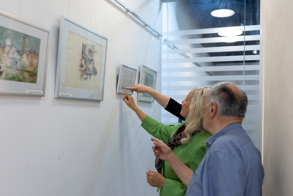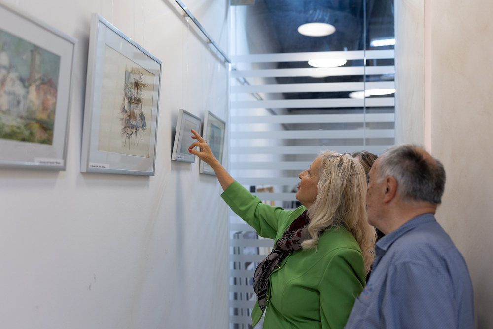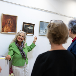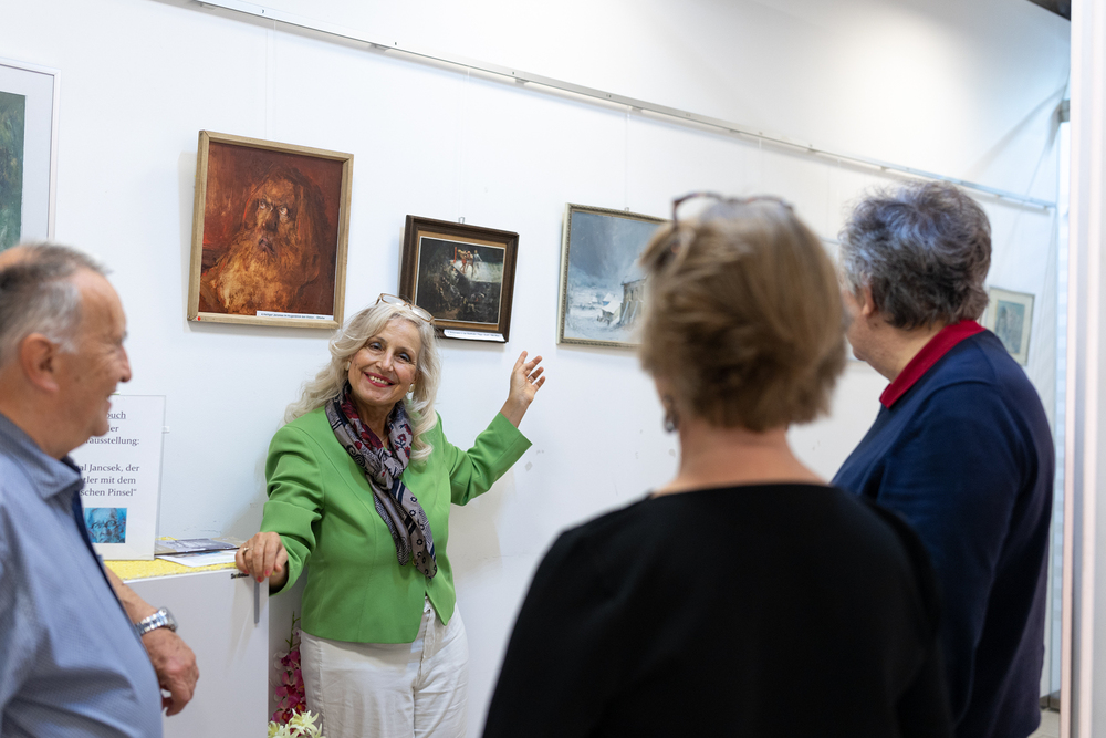 Vernissage der Ausstellung "Antal Jancsek, der Künstler mit dem poetischen Pinsel" im Raum der Stille am Wiener Hauptbahnhof.