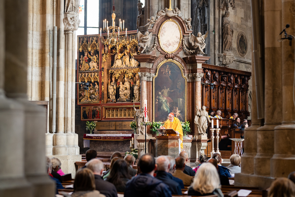 Kardinal Schönborn feierte mit den MitarbeiterInnen der Erzdiözese Wien die traditionelle heilige Messe nach Ostern.