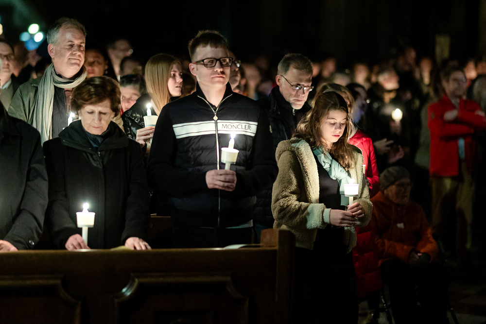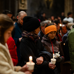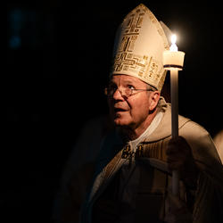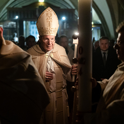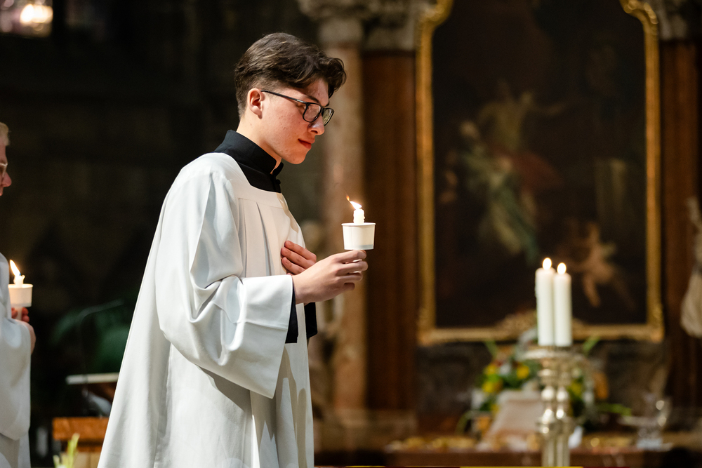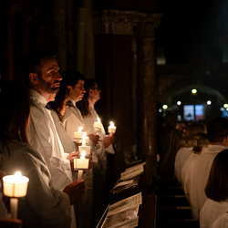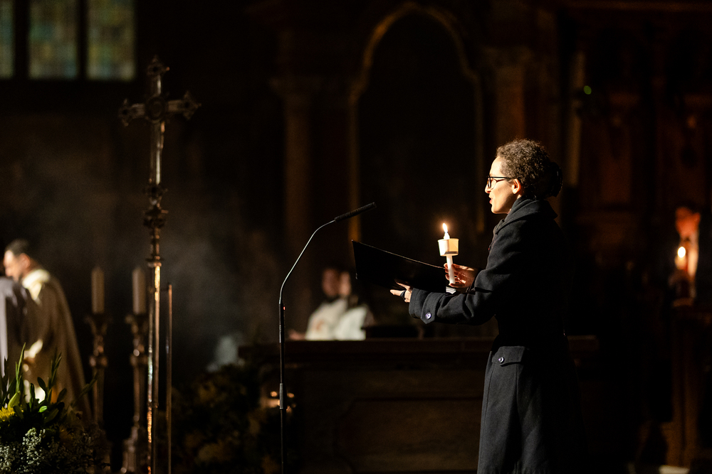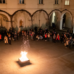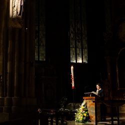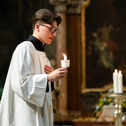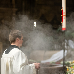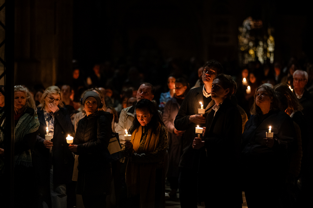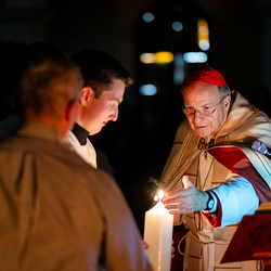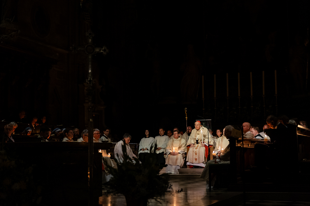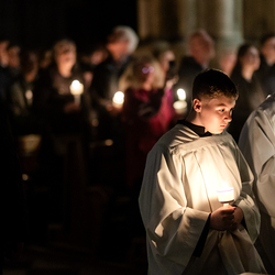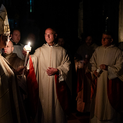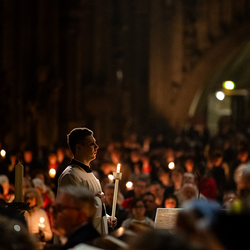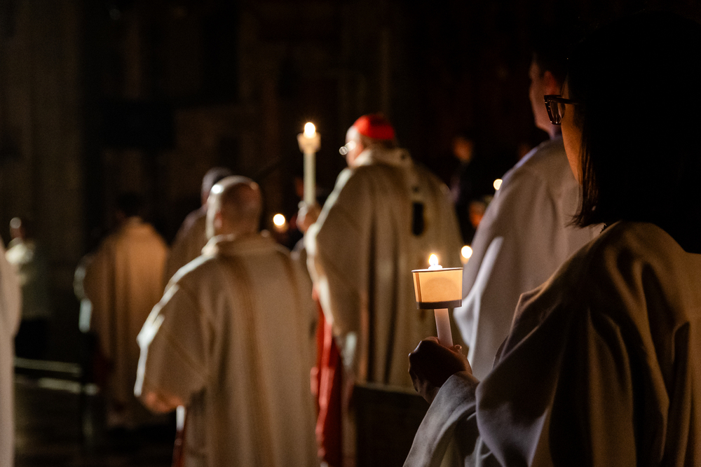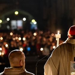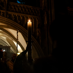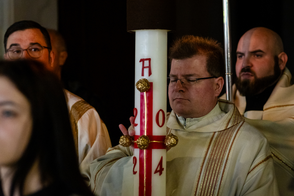 Die Osternacht ist die Feier des Lebens. Ihre Liturgie besteht aus vier Teilen – der Lichtfeier, dem Wortgottesdienst, der Tauffeier und der Eucharistiefeier. Die Lichtfeier beginnt außerhalb des Doms im Hof des Erzbischöflichen Palais. Hier wird die Osterkerze am Osterfeuer entzündet und zum Dom getragen – damit beginnt die Feier der Osternacht. Wir waren mit der Kamera dabei.