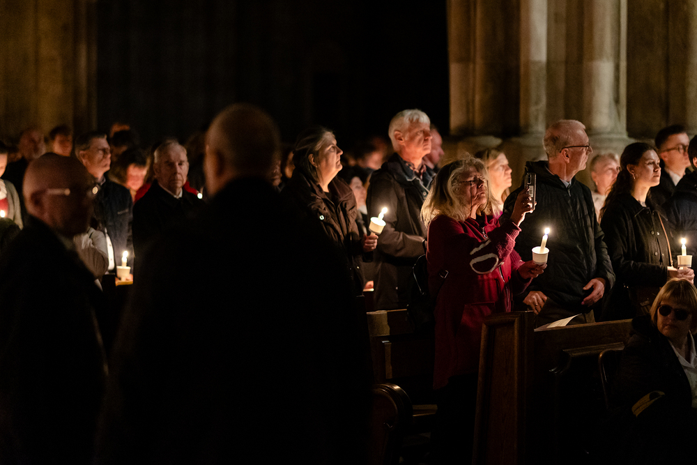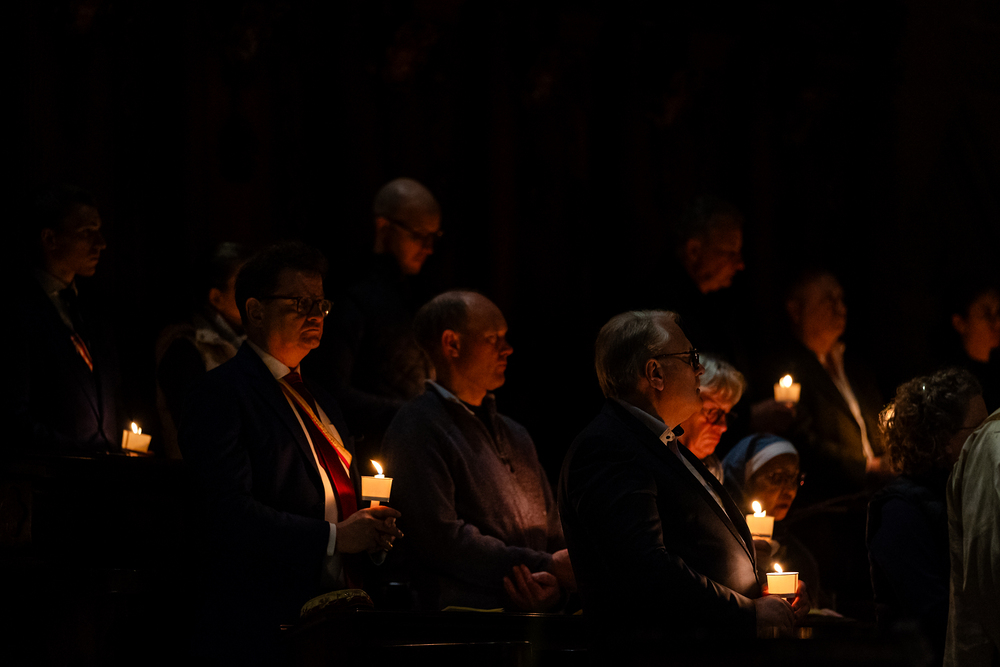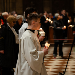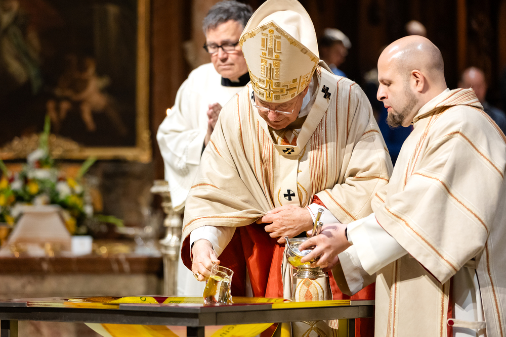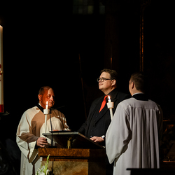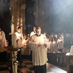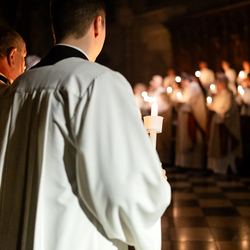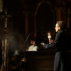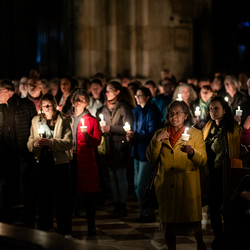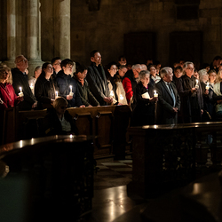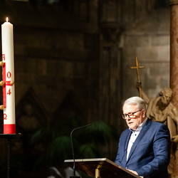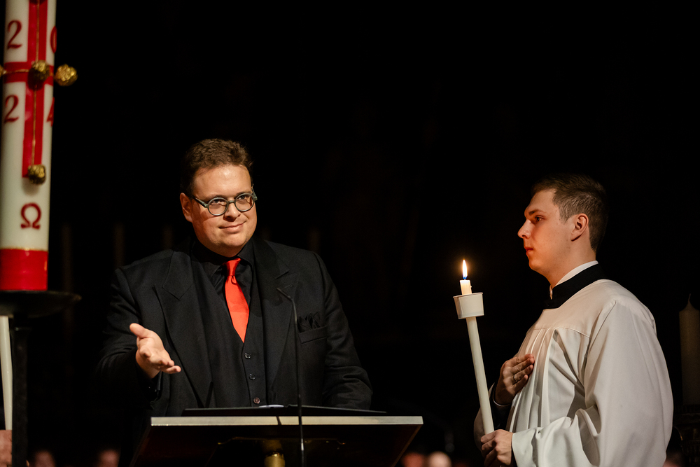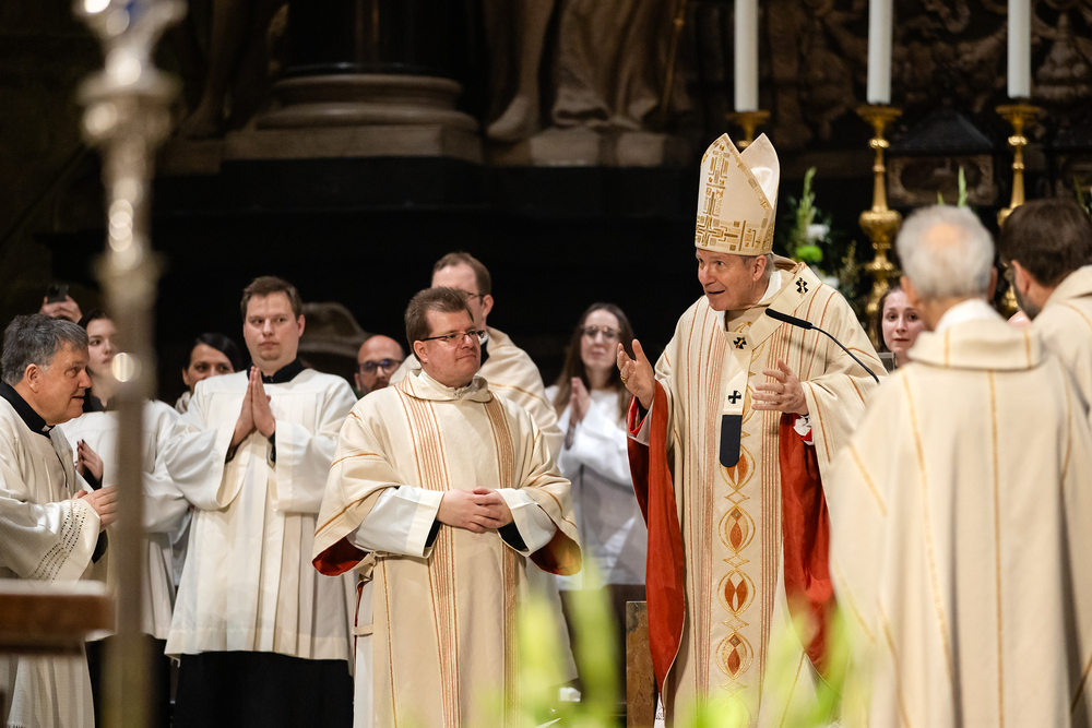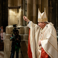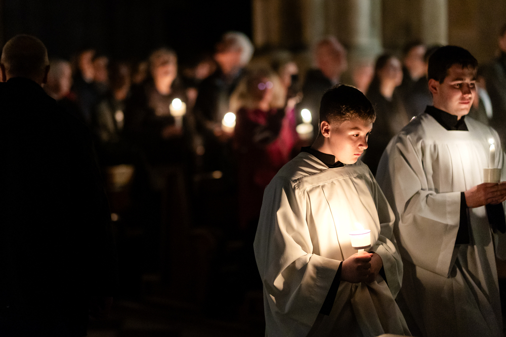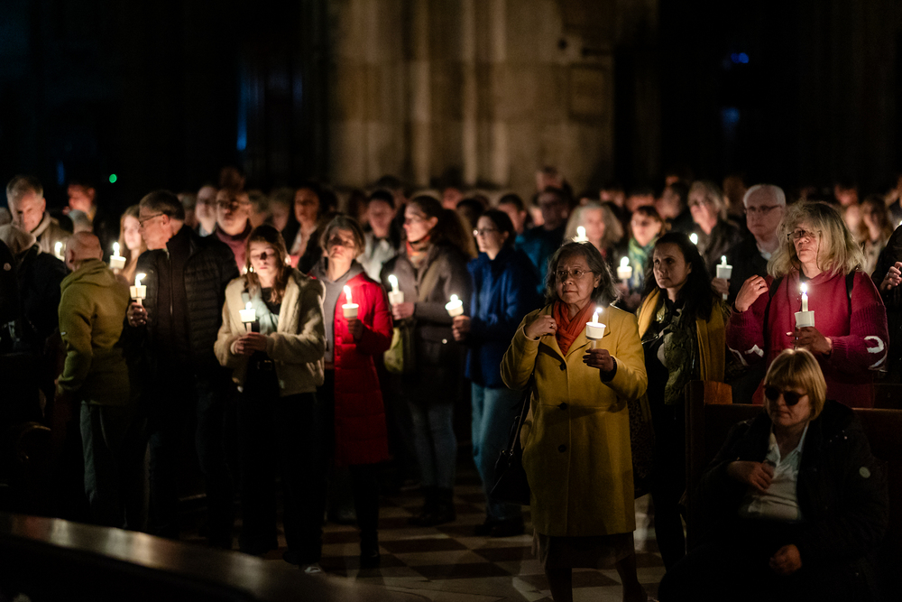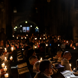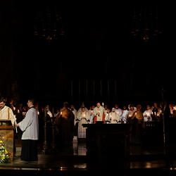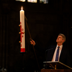Die Osternacht ist die Feier des Lebens. Ihre Liturgie besteht aus vier Teilen – der Lichtfeier, dem Wortgottesdienst, der Tauffeier und der Eucharistiefeier. Die Lichtfeier beginnt außerhalb des Doms im Hof des Erzbischöflichen Palais. Hier wird die Osterkerze am Osterfeuer entzündet und zum Dom getragen – damit beginnt die Feier der Osternacht. Wir waren mit der Kamera dabei.