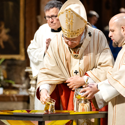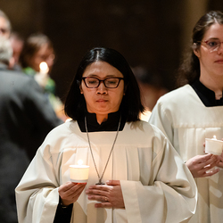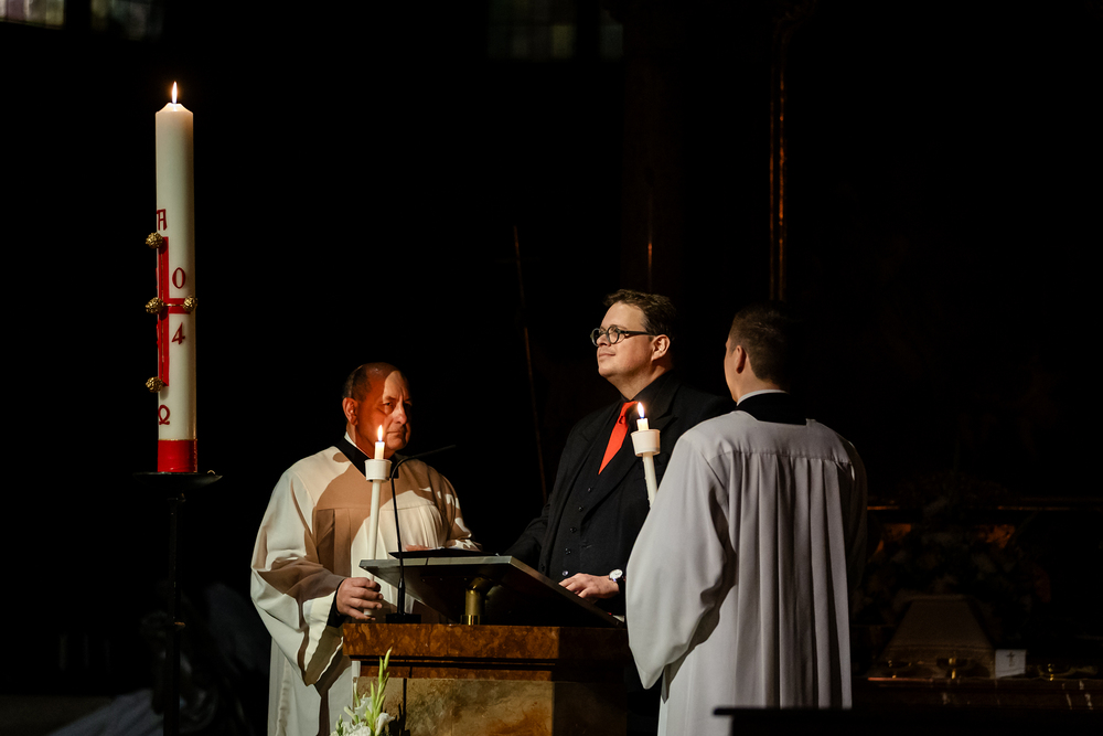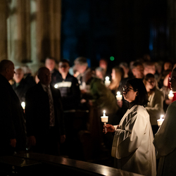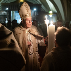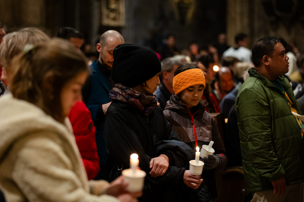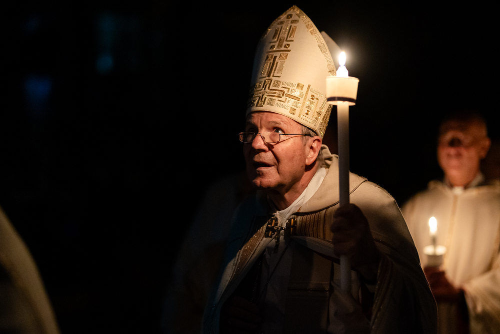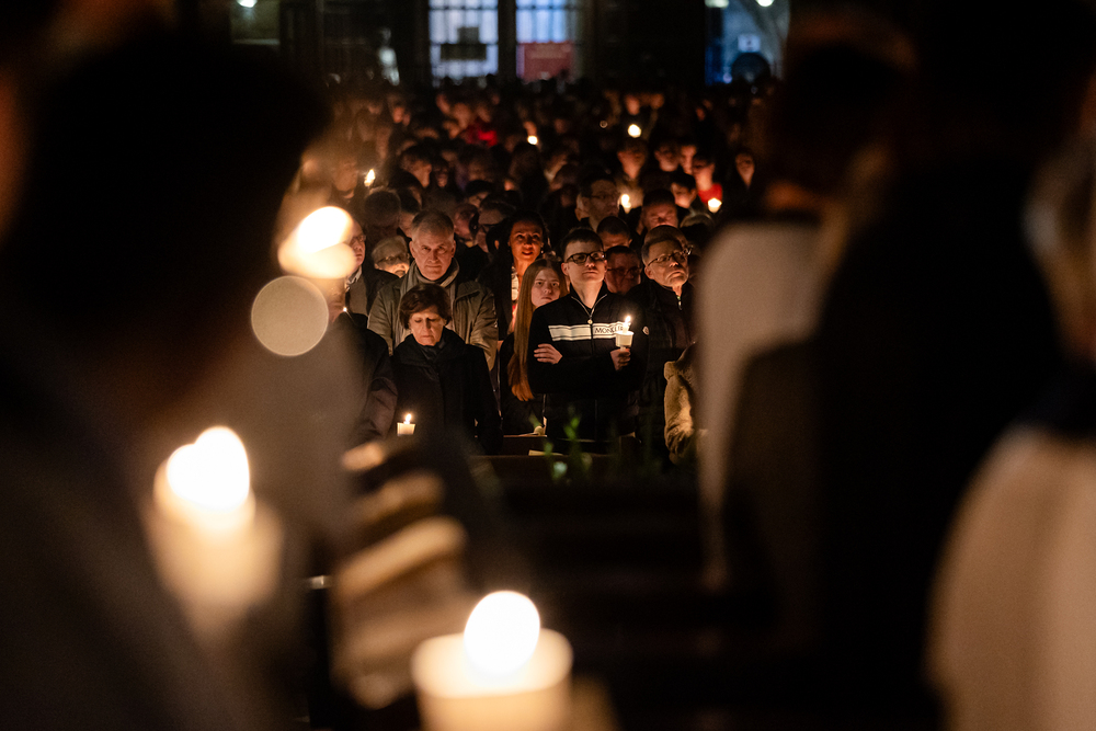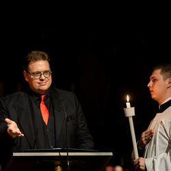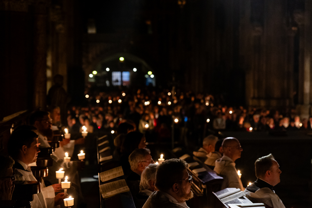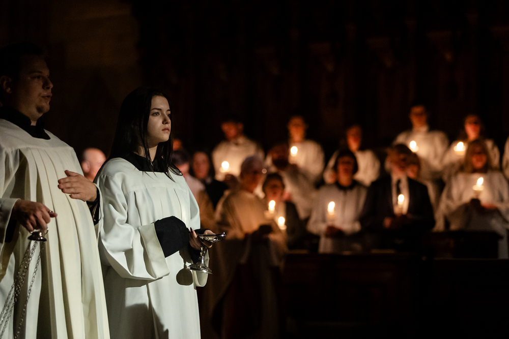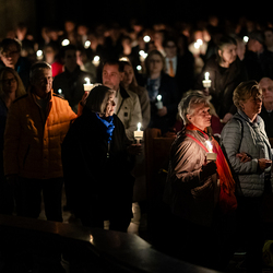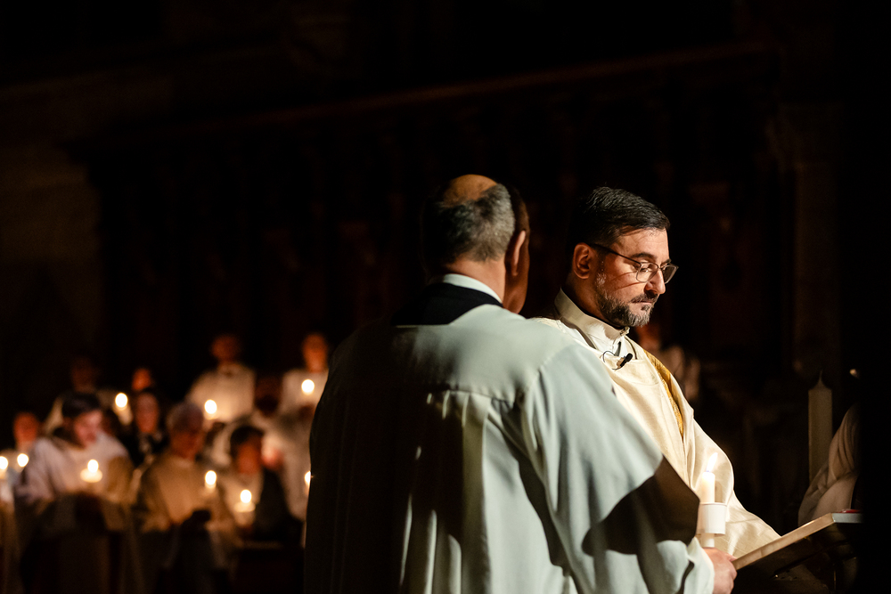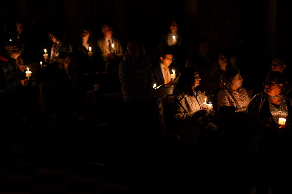 Die Osternacht ist die Feier des Lebens. Ihre Liturgie besteht aus vier Teilen – der Lichtfeier, dem Wortgottesdienst, der Tauffeier und der Eucharistiefeier. Die Lichtfeier beginnt außerhalb des Doms im Hof des Erzbischöflichen Palais. Hier wird die Osterkerze am Osterfeuer entzündet und zum Dom getragen – damit beginnt die Feier der Osternacht. Wir waren mit der Kamera dabei.