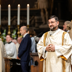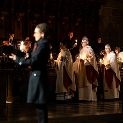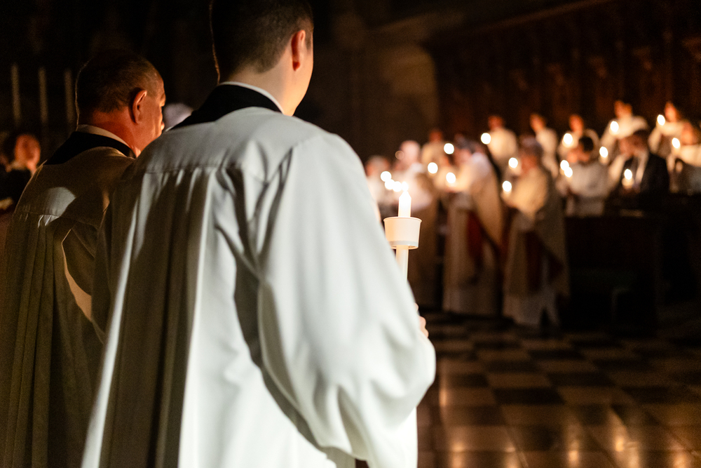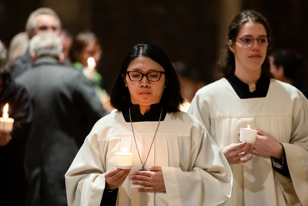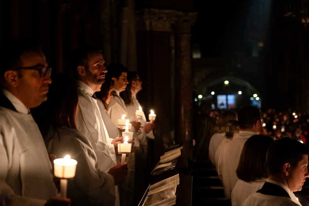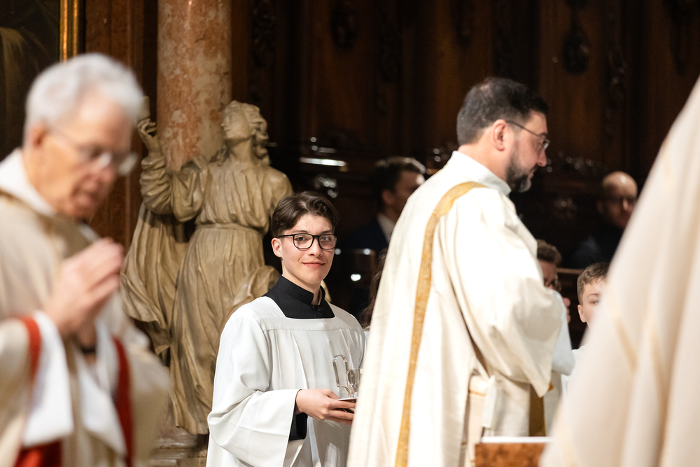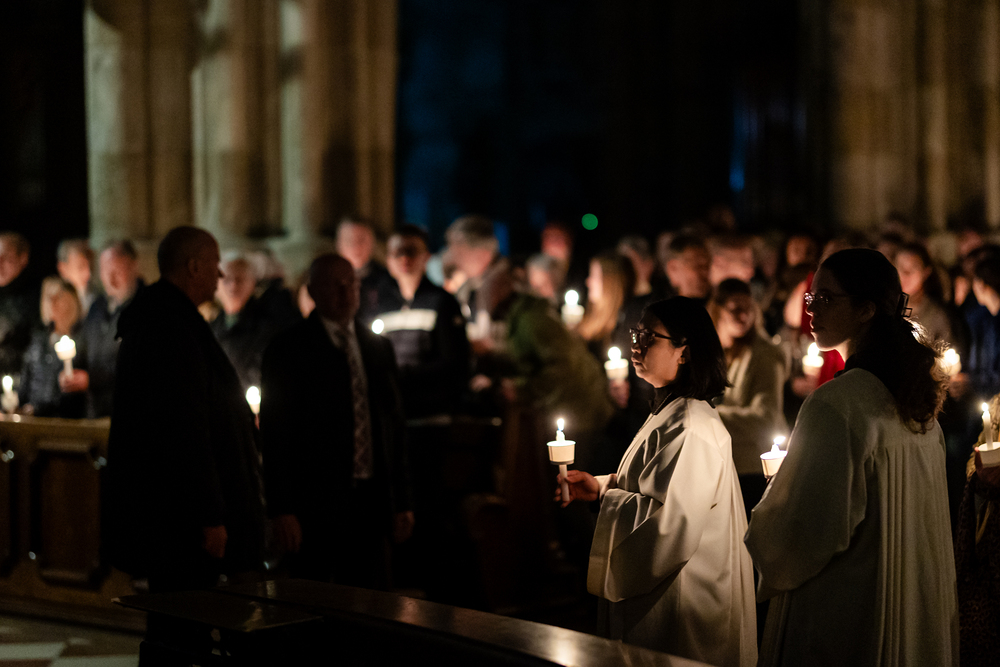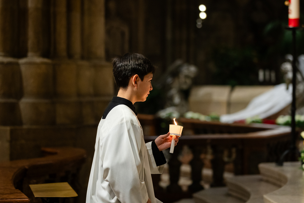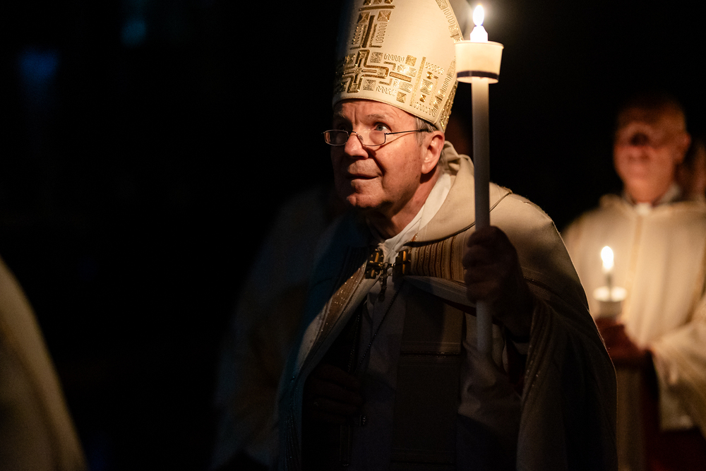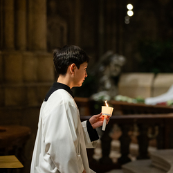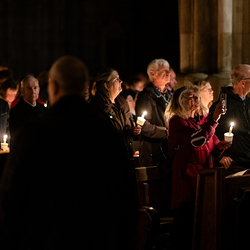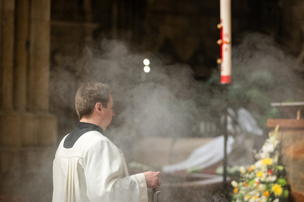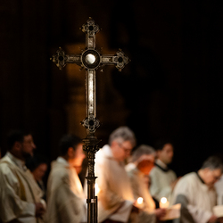 Die Osternacht ist die Feier des Lebens. Ihre Liturgie besteht aus vier Teilen – der Lichtfeier, dem Wortgottesdienst, der Tauffeier und der Eucharistiefeier. Die Lichtfeier beginnt außerhalb des Doms im Hof des Erzbischöflichen Palais. Hier wird die Osterkerze am Osterfeuer entzündet und zum Dom getragen – damit beginnt die Feier der Osternacht. Wir waren mit der Kamera dabei.